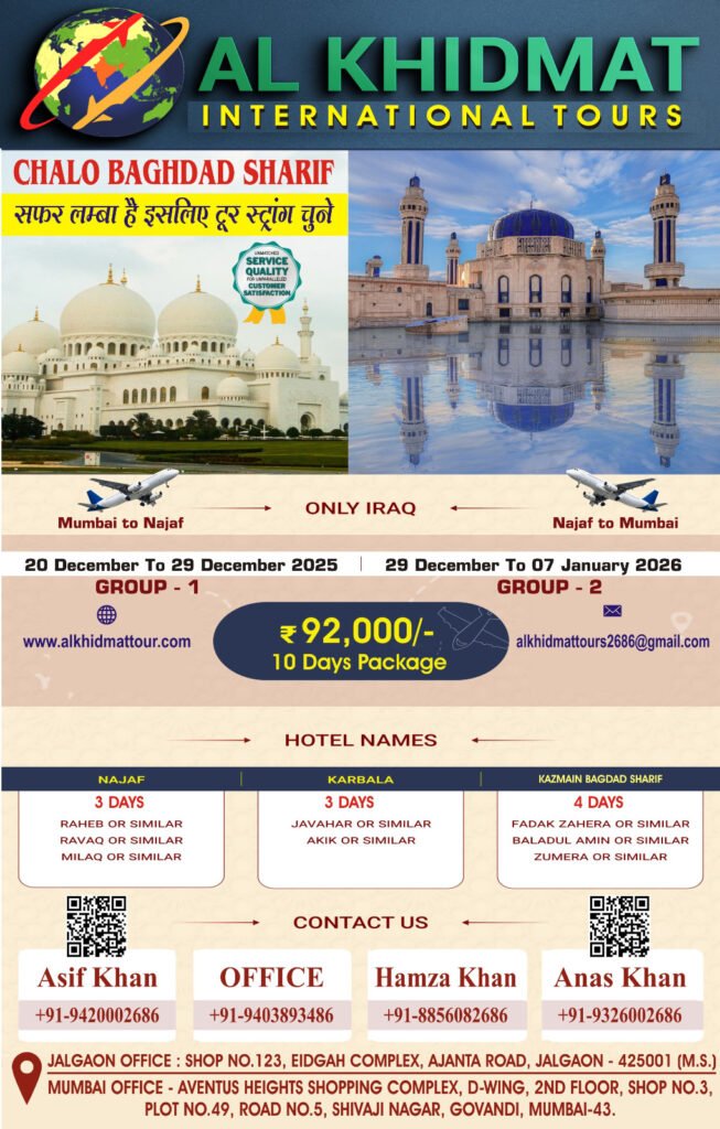 You can contact Asif Khan at 9370002686, 9420002686, or 9272002686. Alternatively, you can email at alkhidmattours2686@gmail.com or visit www.alkhidmattour.com.
