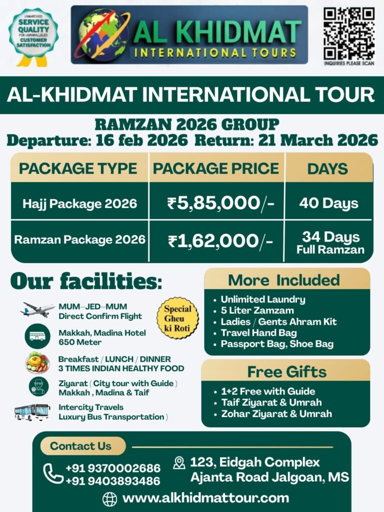Founded in 2020, Al Khidmat International has become a trusted name in the Hajj, Umrah, and Ziyarat tour industry. With over 2000 successful tours completed, we have guided thousands of satisfied pilgrims on their spiritual journeys. Our dedication to providing meticulously planned, comfortable, and spiritually enriching experiences has earned us a loyal client base. Headquartered in Jalgaon, Maharashtra, we are committed to ensuring every aspect of your pilgrimage is seamless and fulfilling. Choose Al Khidmat International for a journey that truly elevates your spiritual experience.